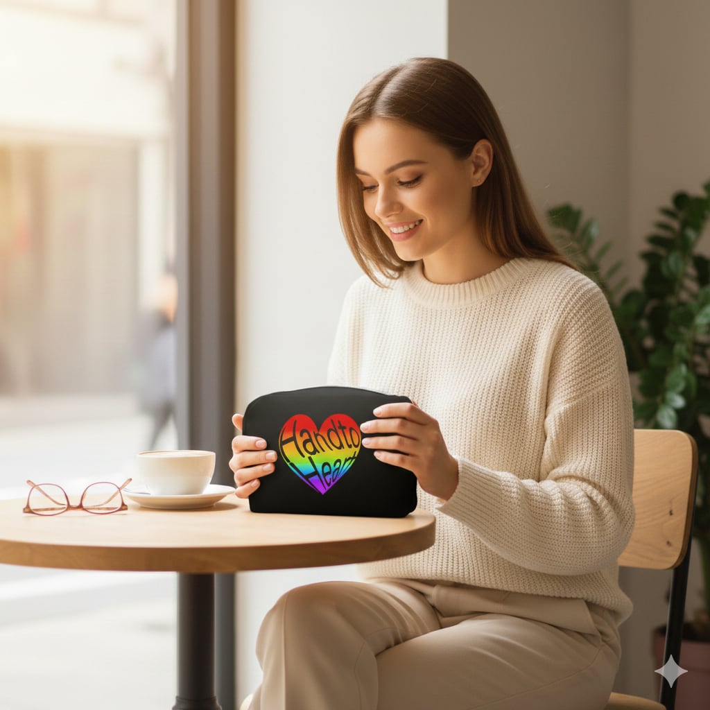 ハートとレインボーが印象的な「Hand to Heart」デザイン。